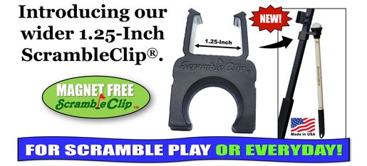 Our ScrambleClip® product line is expanding, literally! Introducing our wider ScrambleClip®, designed to attach to 1.25" square vertical golf cart struts. Pre-release orders for the wider clip will be taken in December, 2025.