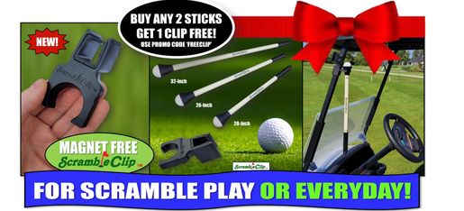 Consider ScrambleStick® golf ball retriever for any upcoming scramble golf tournament. Works great with golf cart play. Can be used as a promotional item with key sponsors added to each stick.