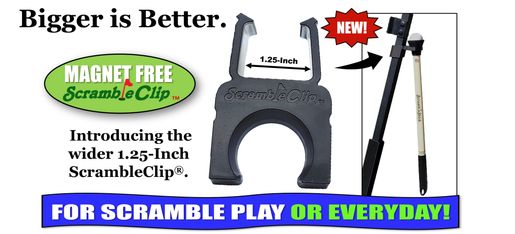 Our ScrambleClip® product line is expanding, literally! Introducing our wider ScrambleClip®, designed to attach to 1.25" square vertical golf cart struts. Pre-release orders for the wider clip will be taken in December, 2025.
