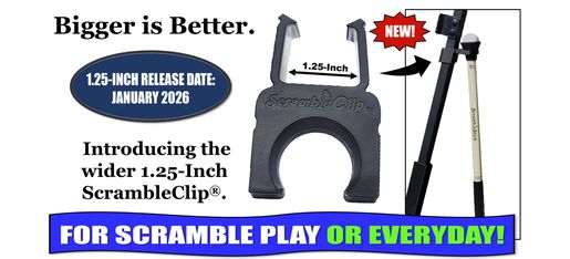 Our product line is expanding and this includes the ScrambleClip®, literally! We're pleased to announce our wider ScrambleClip®. The new clip is designed to attach to 1.25" square vertical golf cart struts. Pre-release orders will be taken in December, 2025.